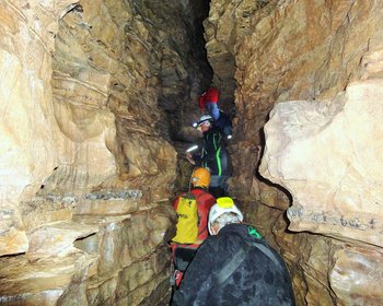 Riesenhöhle in 2100 m Seehöhe mit 2 Eisteilen, Ausdauer und alpine Erfahrung erforderlich.